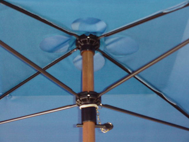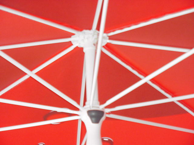Rungossa lasikuituruodot, kestää kovaakin tuulta. Raytex 220 - 10 ribs - Frame fiberglass - Ø 300 cm.